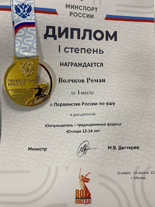Ученик 7А класса школы № 15, кандидат в мастера спорта, Роман Волчков завоевал золотую медаль, в категории юноши 12-14 лет «Юнчцньцуань традиционные формы».