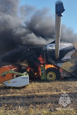 В деревне Мизиново в поле сгорел комбайн