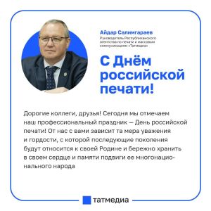 В День российской печати Руководитель Республиканского агентства по печати и массовым коммуникациям «Татмедиа» поздравил медиасообщество Татарстана