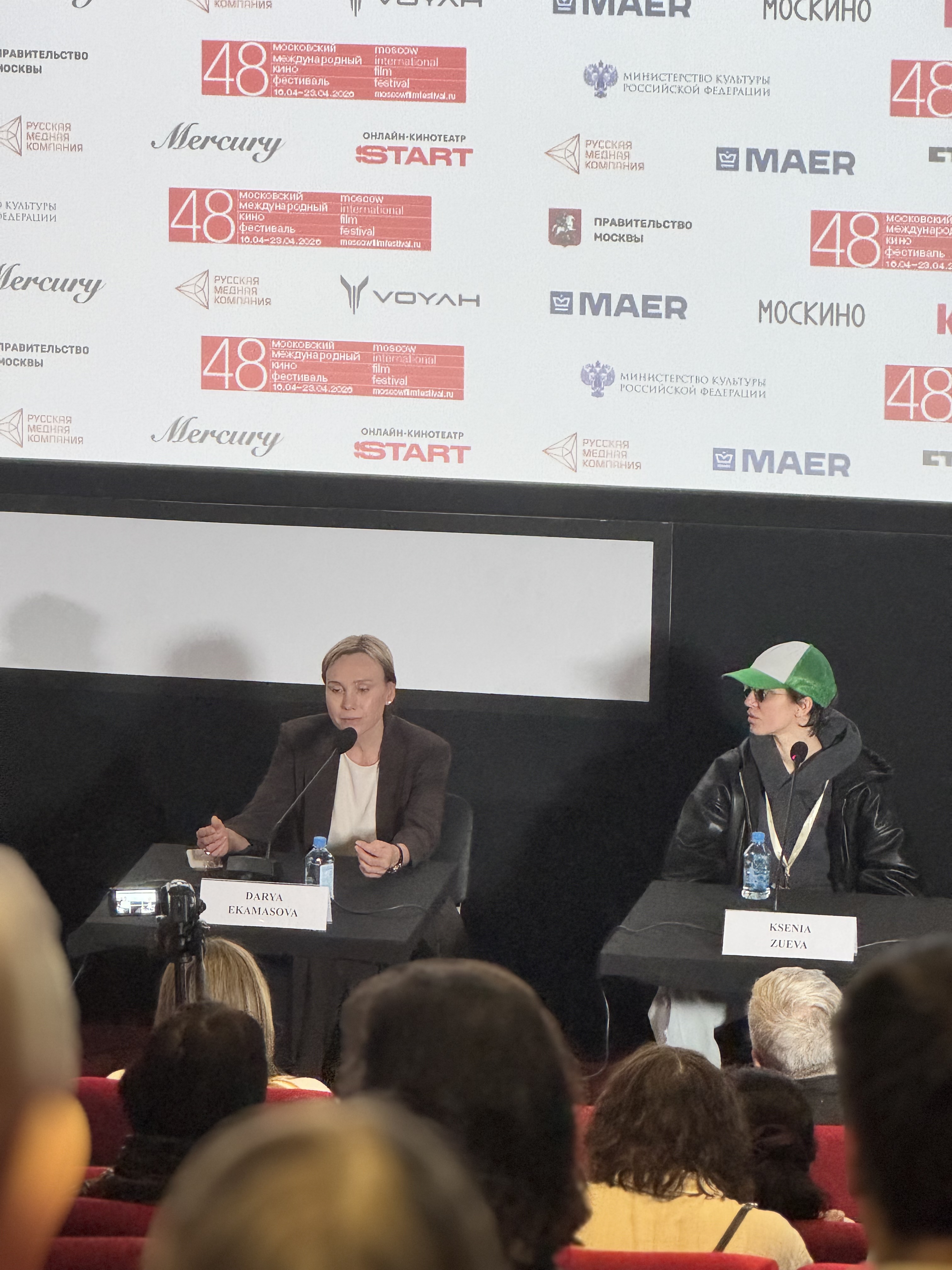 Режиссёр Ксения Зуева и актриса Дарья Екамасова на пресс-конференции фильма «Хрупкость. Выдумщица» (фото К. Чалого)