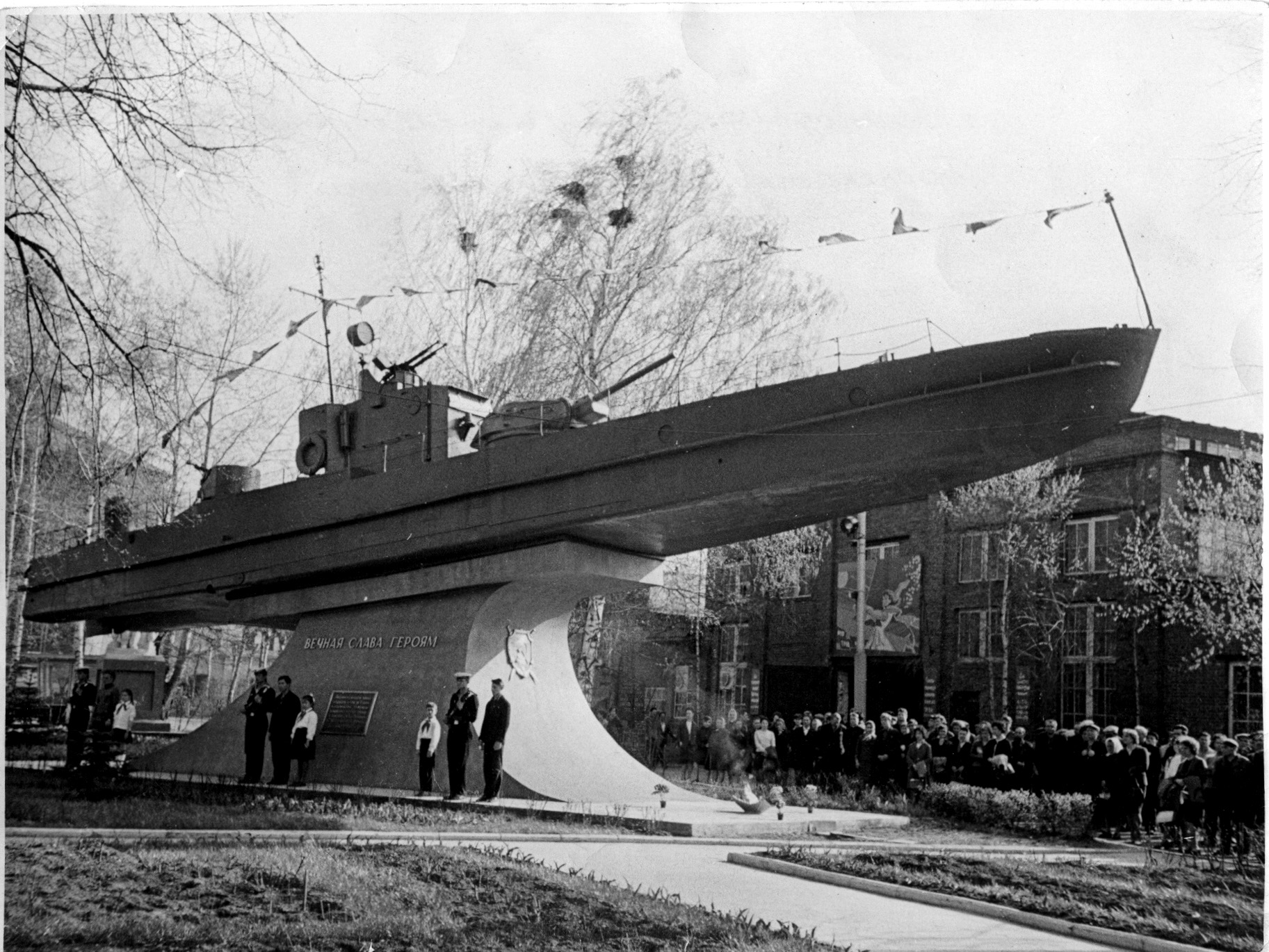 Но главной достопримечательностью этой парковой магистрали является памятник бронекатеру «БК-44» на постаменте, стилизованном под морскую волну. Как оказалось, история этого корабля связана с нашим городом.