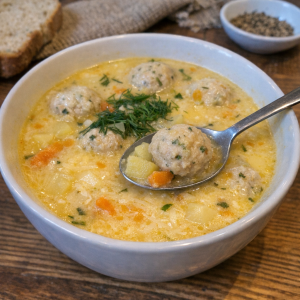 Нежный сырный суп с куриными фрикадельками — попробуйте, не пожалеете